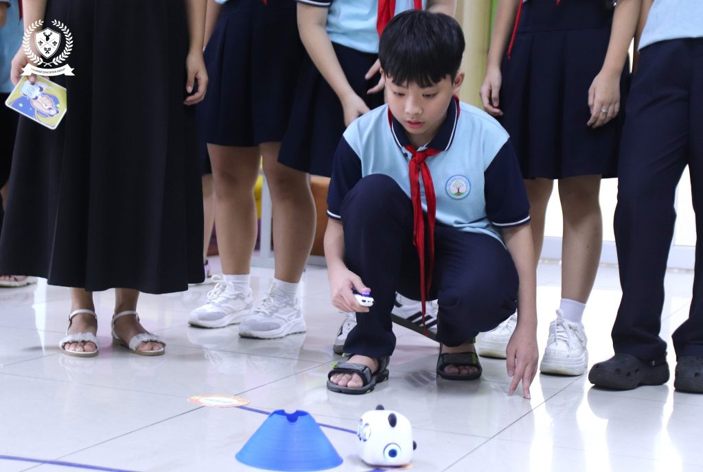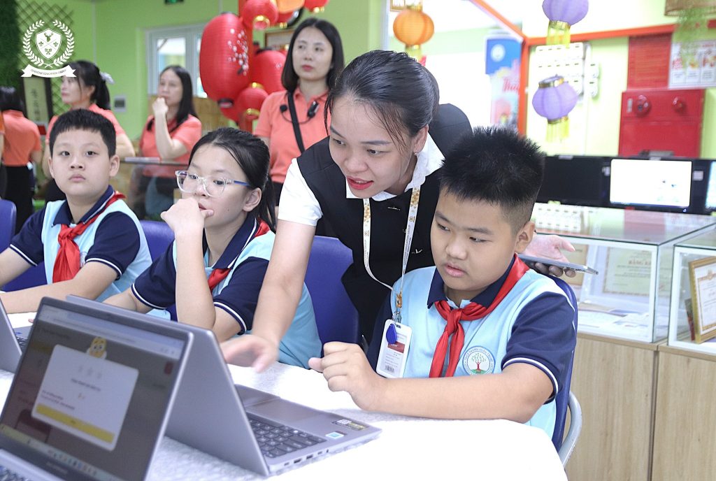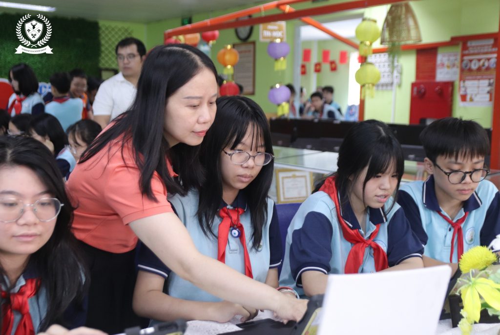 Các thầy cô không chỉ hướng dẫn học sinh thao tác kỹ thuật mà còn chia sẻ cách ứng dụng AI, robot và STEAM vào học tập tiếng Anh – giúp học sinh tiếp cận xu hướng giáo dục quốc tế một cách gần gũi và thực tiễn.