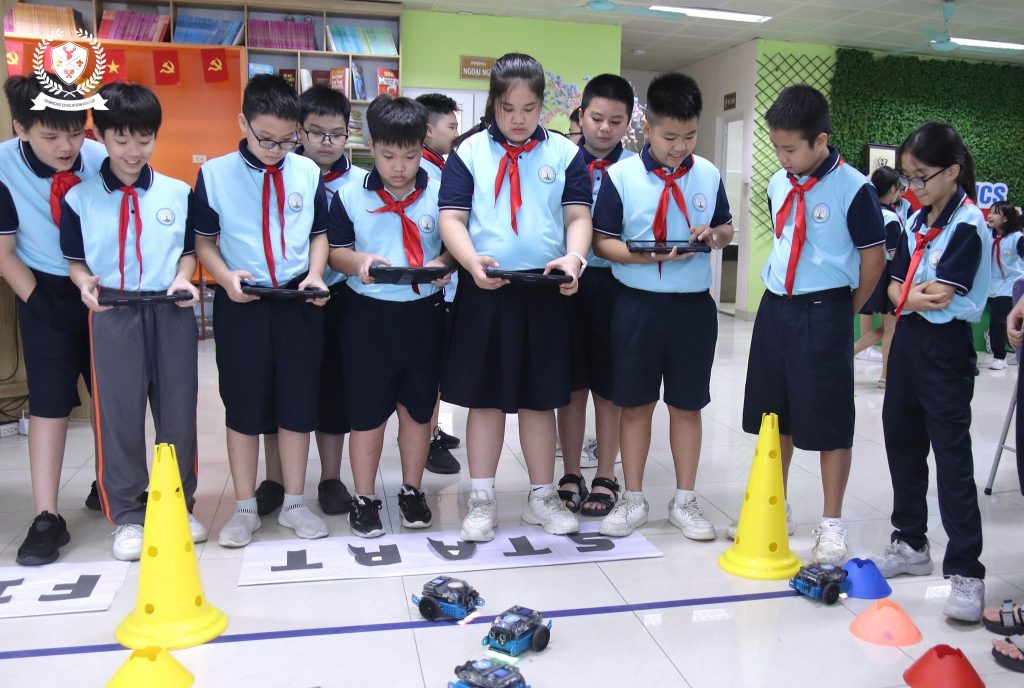 - Học sinh lập trình robot di chuyển theo đường định sẵn thông qua máy tính bảng.
